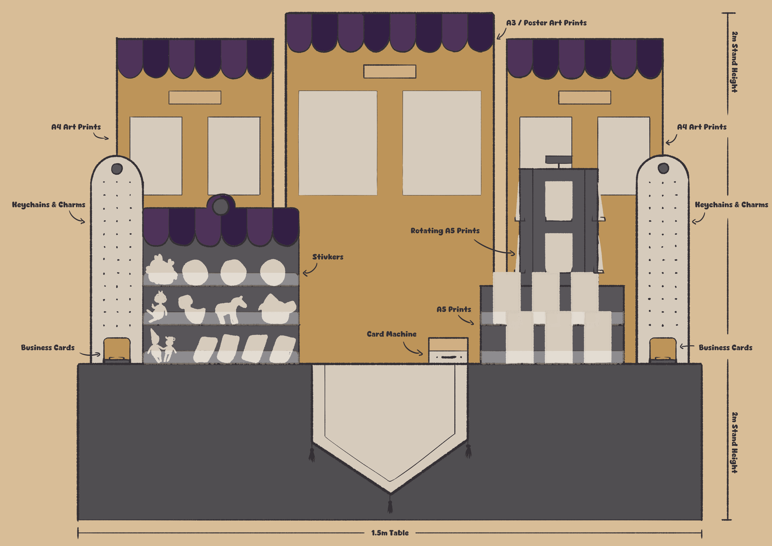 Since starting to attend in-person events, I’ve developed a modular setup that can be adjusted to suit a variety of different spaces. With history working as a Graphic Designer, my Studio offers all manner of Art Prints and Stickers! Most of which are produced in-house right here in Cork!